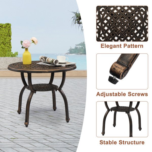 Home > Cast Aluminum Outdoor Side Table, Anti-Rust Outdoor Round End Table, Patio Coffee Bistro Table for Indoor Garden Porch Balcony, Antique Bronze